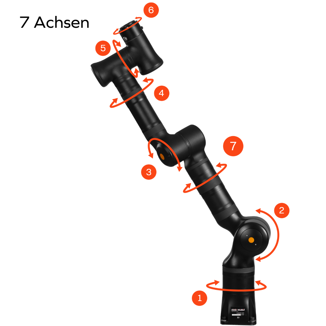 - 7 Achsen → mehr Bewegungsfreiheit als klassische 6-Achs-Roboter